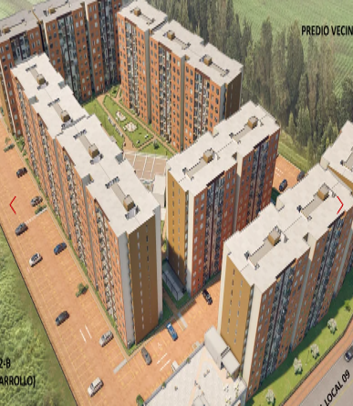 Conjunto residencial vis con 680 apartamentos, en 15 torres , con un área de construcción de 46,618 m2 proyecto entregado en el año 2,023, en la ciudad de Bogotá.